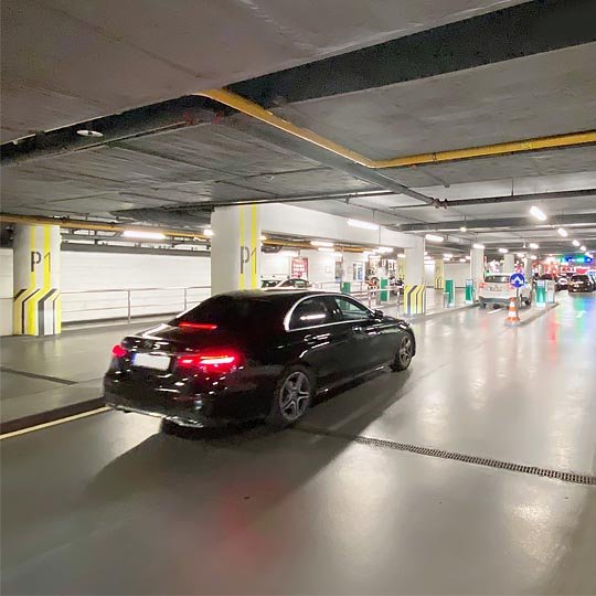 Die Reservierung von Parkplätzen ist nicht möglich. Das Parkhaus verfügt über 600 Stellplätze auf drei unterirdischen Ebenen.